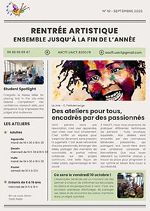 Arts sur Rail, lors de sa parution est affiché à l'atelier de peinture où tous les adhérents peuvent le consulter à loisir. Cliquez sur une page pour la consulter |