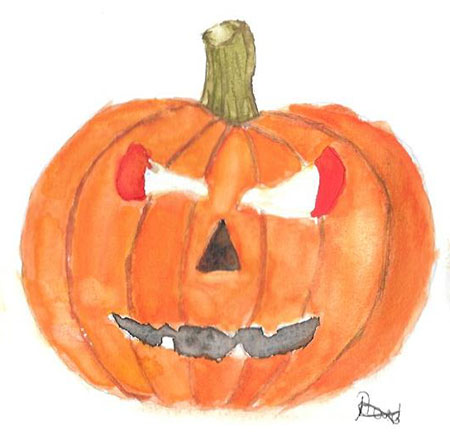 " Citrouille terrifiante " aquarelle 15 x 10cm |